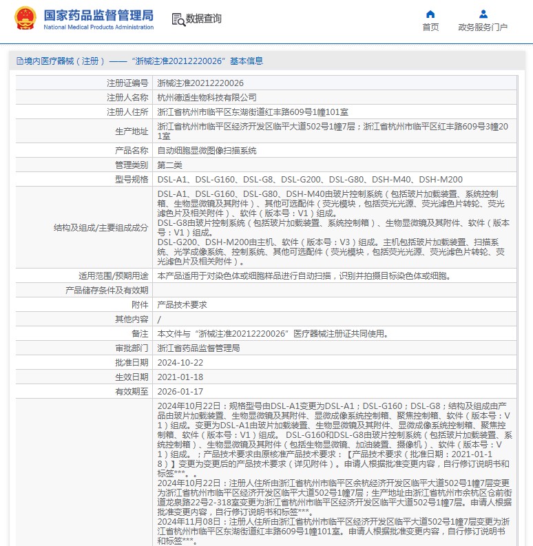 DSL-A1、DSL-G160、DSL-G80、DSH-M40由玻片控制系统(包括玻片加载装置、系统控制箱、生物显微镜及其附件)、其他可选配件(荧光模块,包括荧光光源、荧光滤色片转轮、荧光滤色片及相关附件)、软件(版本号:V1)组成。