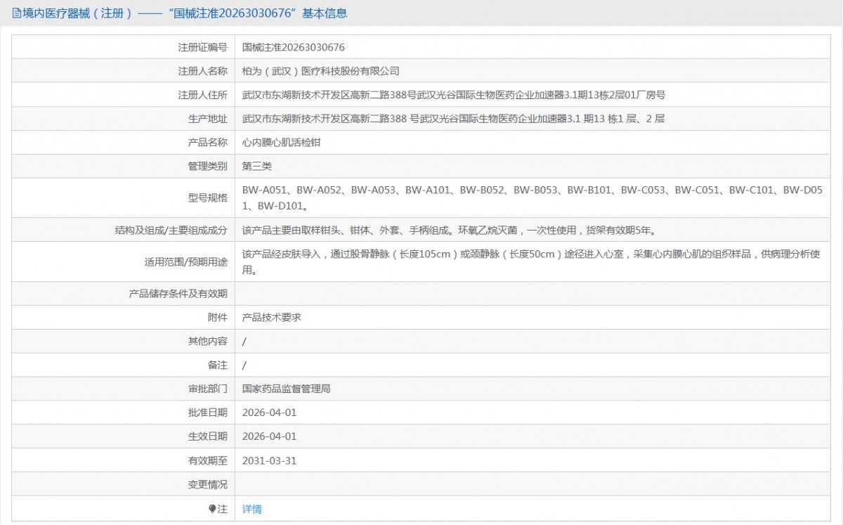在心脏疾病的诊断中,获取准确的心肌组织样本至关重要。BW - A051心内膜心肌活检钳就是为此而生的专业医疗器械。它就像是***位***的“心脏取样师”,能够通过特定的操作路径,深入心脏内部,***地夹取心内膜下的心肌组织,为医生进***步了解心脏的病理状况提供关键依据,助力医生制定更***有效的治疗方案。