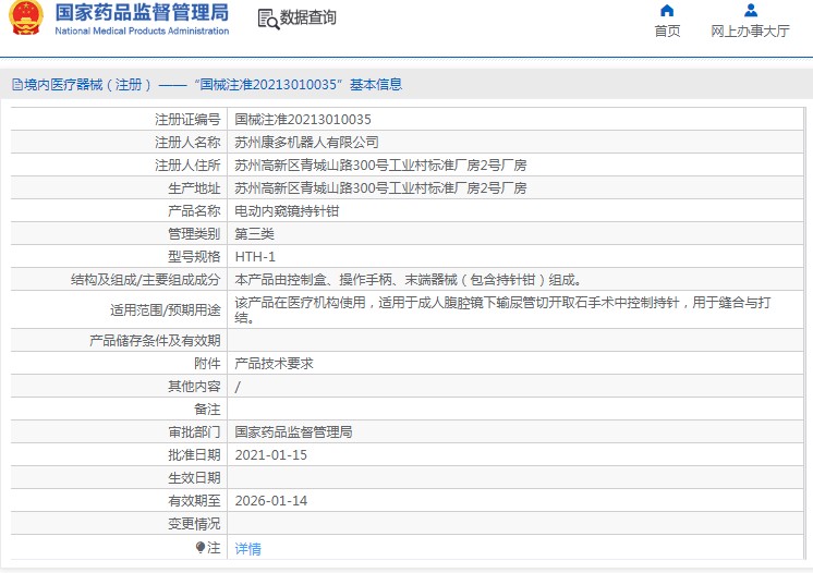 该产品在医疗机构使用,适用于成人腹腔镜下输尿管切开取石手术中控制持针,用于缝合与打结。