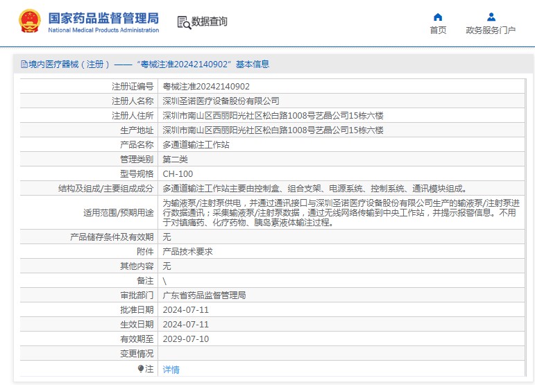 为输液泵/注射泵供电,并通过通讯接口与深圳圣诺医疗设备股份有限公司生产的输液泵/注射泵进行数据通讯;采集输液泵/注射泵数据,通过无线网络传输到中央工作站,并提示报警信息。不用于对镇痛药、化疗药物、胰岛素液体输注过程。