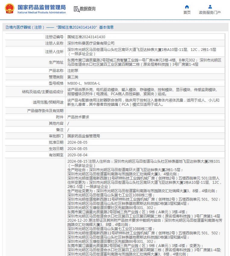 该产品与配套使用注射器联合使用,临床用于控制注入患者体内液体流量,适用于成人、小儿和新生儿患者,其中患者自控镇痛(PCA)模式仅适用于成人。
