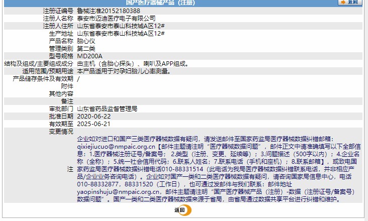 药(械)准字:鲁械注准20152230388
