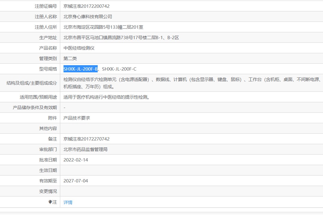 适用范围/预期用途:适用于医疗机构进行中医经络的提示性检测。