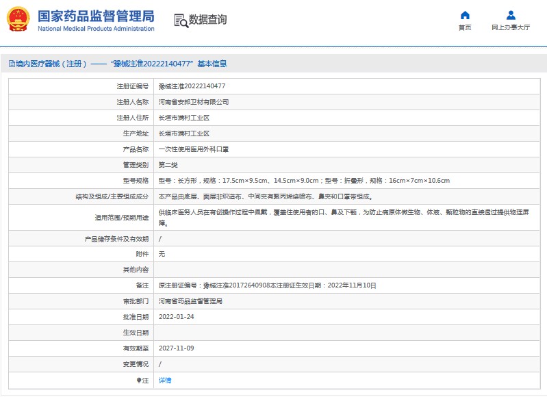 本产品由底层、面层非织造布、中间夹有聚丙烯熔喷布、鼻夹和口罩带组成。