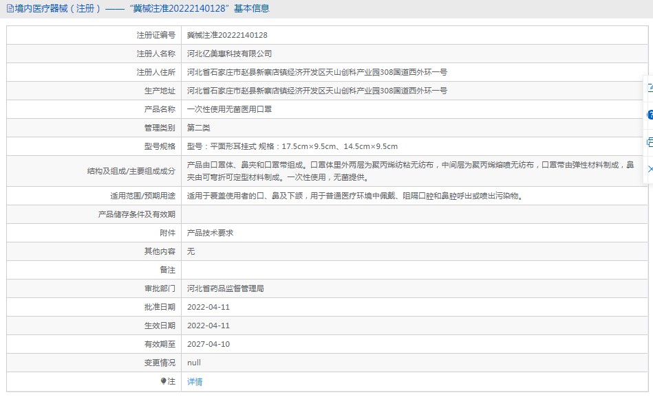 适用于覆盖使用者的口、鼻及下颌,用于普通医疗环境中佩戴、阻隔口腔和鼻腔呼出或喷出污染物。