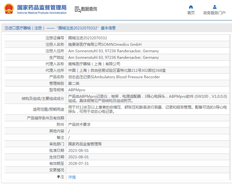 产品由ABPMpro记录仪,袖带,电源适配器,3导心电探头,ABPMpro软件 (SW100,V1.0.0.0)组成。具体规格见产品结构及组成附页。