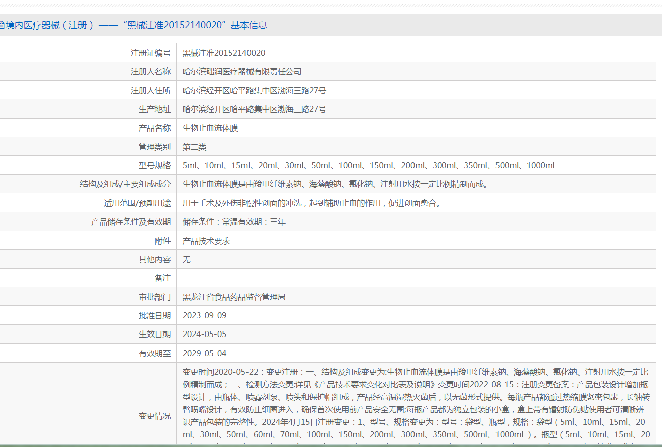 生物止血流体膜是由羧甲纤维素钠、海藻酸钠、氯化钠、注射用水按***定比例精制而成。